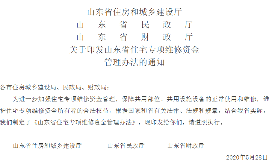 條 為了加強對住宅專項維修資金(以下簡稱維修資金)的管理,保障住宅共用部位、共用設施設備的正常使用和維修,維護維修資金所有者的合法權益,根據(jù)《中華人民共和國物權法》《物業(yè)管理條例》《山東省物業(yè)管理條例》《住宅專項維修資金管理辦法》等法律、法規(guī)和規(guī)章的規(guī)定,結合本省實際,制定本辦法。