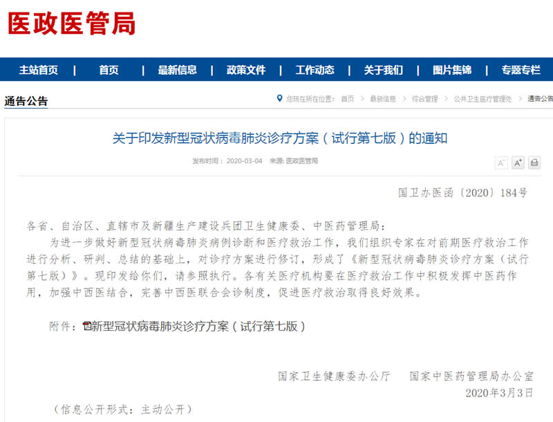 為進(jìn)一步做好新型G狀病毒肺炎病例診斷和醫(yī)療救治工作,我們組織專家在對(duì)前期醫(yī)療救治工作進(jìn)行分析、研判、總結(jié)的基礎(chǔ)上,對(duì)診療方案進(jìn)行修訂,形成了《新型G狀病毒肺炎診療方案(試行第七版)》。現(xiàn)印發(fā)給你們,請(qǐng)參照?qǐng)?zhí)行。各有關(guān)醫(yī)療機(jī)構(gòu)要在醫(yī)療救治工作中積J發(fā)揮中醫(yī)藥作用,加強(qiáng)中西醫(yī)結(jié)合,完善中西醫(yī)聯(lián)合會(huì)診制度,促進(jìn)醫(yī)療救治取得良好效果。