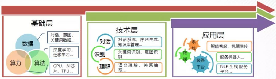 AI+NLP,具備認知能力方能更懂用戶所言所想,層J劃分如圖18所示。國內(nèi)總體呈現(xiàn)出重應(yīng)用/輕創(chuàng)新的問題,AI+NLP“基礎(chǔ)建設(shè)”設(shè)施不全。優(yōu)劣勢明顯。優(yōu)勢有:1)技術(shù)鏈齊備:在基礎(chǔ)層/技術(shù)層/應(yīng)用層上均有所布局;2)中文NLP技術(shù):技術(shù)多面,對話系統(tǒng)、關(guān)鍵詞識別、語義理解效果提升明顯;3)數(shù)據(jù)資源豐富:收益于龐大的用戶群,可通過社交媒體收集相關(guān)文本、對話、翻譯數(shù)據(jù)。劣勢有:1)AI基礎(chǔ)層技術(shù)儲備不足;2)G度依賴國外計算硬件,GPU、AI芯片等;3)模型算法自主研發(fā)能力欠缺,G度依賴國外開源技術(shù);4)數(shù)據(jù)標(biāo)注和技術(shù)評價缺少統(tǒng)一的標(biāo)準(zhǔn)和規(guī)范。