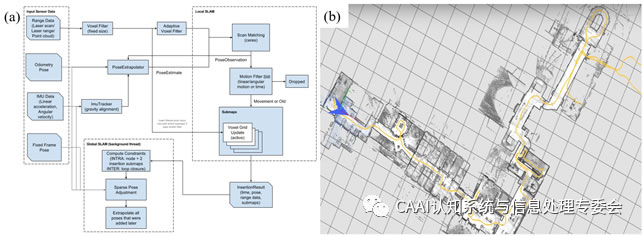 Cartographer[1]是google在2016年開源[2]的跨平臺(tái)和傳感器配置,并提供2D和3D實(shí)時(shí)同步定位和建圖的SLAM系統(tǒng),主要通過(guò)閉環(huán)檢測(cè)來(lái)消除構(gòu)圖過(guò)程中產(chǎn)生的累積誤差,以達(dá)到融合多傳感器數(shù)據(jù)的局部submap創(chuàng)建和用于閉環(huán)檢測(cè)的scan match策略的實(shí)現(xiàn)。主要包括cartographer和Cartographer_ros兩部分,其中cartographer為底層實(shí)現(xiàn),主要負(fù)責(zé)處理來(lái)自Laser、IMU、Odemetry的數(shù)據(jù)并基于這些數(shù)據(jù)進(jìn)行地圖的構(gòu)建。cartographer_ros是基于cartographer的上層應(yīng)用,主要負(fù)責(zé)從ros的通信機(jī)制獲取傳感器的數(shù)據(jù)并將它們轉(zhuǎn)換成cartographer中定義的格式傳遞給cartographer處理,與此同時(shí)也將cartographer的處理結(jié)果用于發(fā)布、顯示或保存。