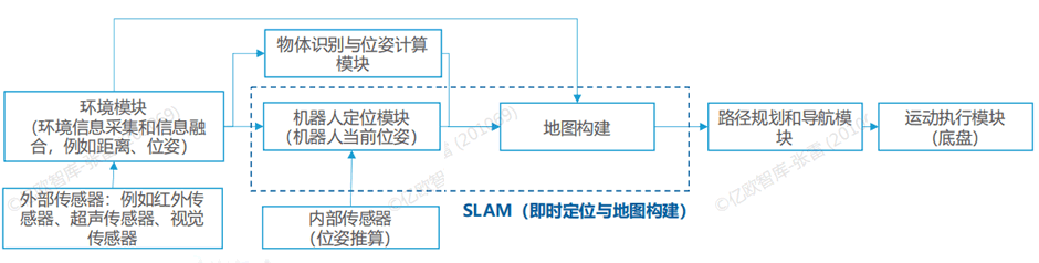 環(huán)境感知模塊的基礎(chǔ)硬件是各類(lèi)不同的傳感器,他們充當(dāng)了機(jī)器人的五官,收集不同的測(cè)量信息;SLAM算法(Simultaneous Localization