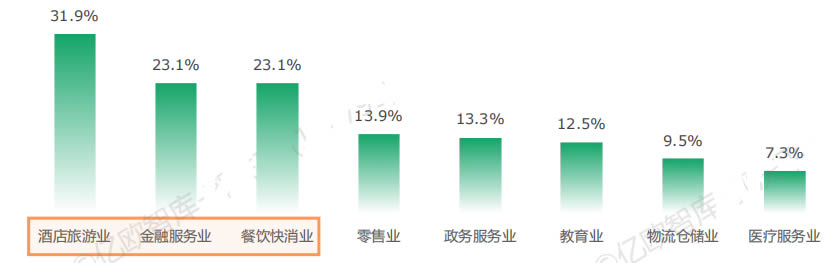 短期:酒旅行業(yè)滲透率較G,倉儲(chǔ)物流等行業(yè)擁有龐大的增量機(jī)會(huì),各大廠商正在積J布局相應(yīng)服務(wù)場(chǎng)景