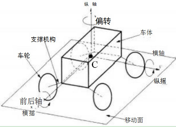 (3)車輪支撐機構(gòu):車輪支撐機構(gòu)位于車輪與車體之間,決定兩者在空間上的 關(guān)系,包括自由度在內(nèi)。車輪支撐機構(gòu)承載車輪以上部分的載荷,并將它分解到各 個車輪上,懸掛裝置、緩沖裝置也應(yīng)該包含在車輪支撐機構(gòu)之內(nèi)。