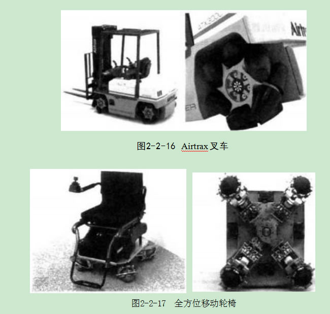 現(xiàn)在比較常見的全方位移動(dòng)機(jī)構(gòu)有:空氣懸浮式,全輪轉(zhuǎn)向式,如圖2-2-3 所示。麥卡納姆輪(MECANUM)S~7, 球履帶全方位移動(dòng)機(jī)構(gòu)8等。