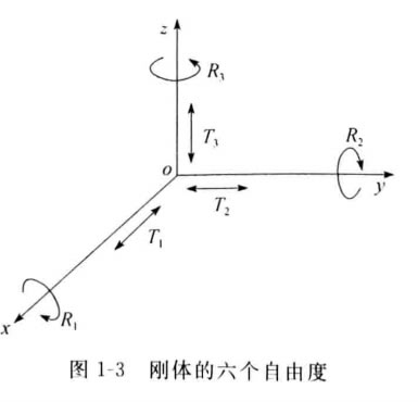 物體上任何一點都與坐標軸的正交集合有 關(guān)。物體能夠?qū)ψ鴺讼颠M行d立運動的數(shù)目稱為 自由度(Degree of Freedom,DOF)。物體所能 進行的運動包括(見圖1-3):