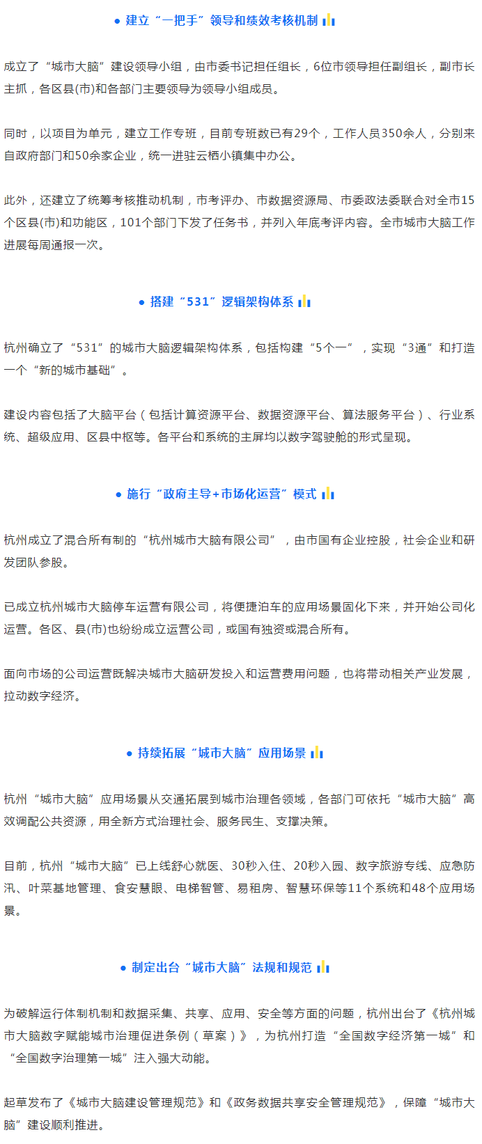 治堵取得階段性勝利后,2018年9月和12月,杭州市推出了“城市大腦升級(jí)”版,提出構(gòu)建 “以大腦中樞平臺(tái)為核心,縱向到區(qū)縣(市),橫向到各部門(mén)”的“城市大腦”,建立了市級(jí)、部門(mén)系統(tǒng)、區(qū)縣平臺(tái)和街道平臺(tái)四類(lèi)數(shù)字駕駛艙,并聚焦城市治理的“痛點(diǎn)”“堵點(diǎn)”和群眾反映強(qiáng)烈的“熱點(diǎn)”“難點(diǎn)”問(wèn)題,推出了11大系統(tǒng)和48個(gè)應(yīng)用場(chǎng)景,“城市大腦”在城市運(yùn)行的生命體征感知、公共資源配置、宏觀決策指揮、事件預(yù)測(cè)預(yù)警、“城市病”治理等方面發(fā)揮了重要作用。
