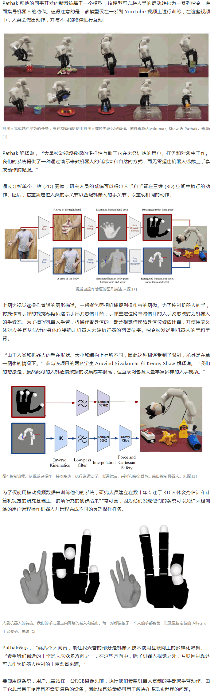 卡內(nèi)基梅隆大學(xué)(Carnegie Mellon University)的研究人員創(chuàng)建了一種新系統(tǒng),用戶只需在攝像機(jī)前演示他們希望機(jī)器人復(fù)制的動(dòng)作,就可以遠(yuǎn)程控制機(jī)器人的手和手臂。
