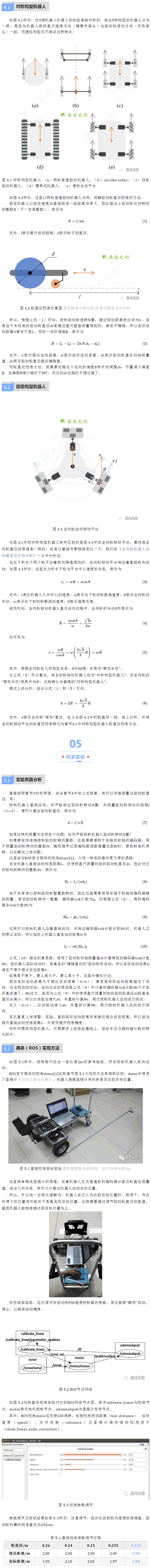 若要使用ROS校準(zhǔn)demo,則需要根據(jù)其要求,自行編寫好其配套程序;若不采用ROS demo,則可以直接驅(qū)動(dòng)機(jī)器人直線運(yùn)動(dòng)一段距離,使用直尺測(cè)量,并記錄編碼器計(jì)數(shù)變化,以直接計(jì)算出實(shí)際的輪直徑,還有其他各種實(shí)操方法,讀者可自行設(shè)計(jì)實(shí)驗(yàn)。