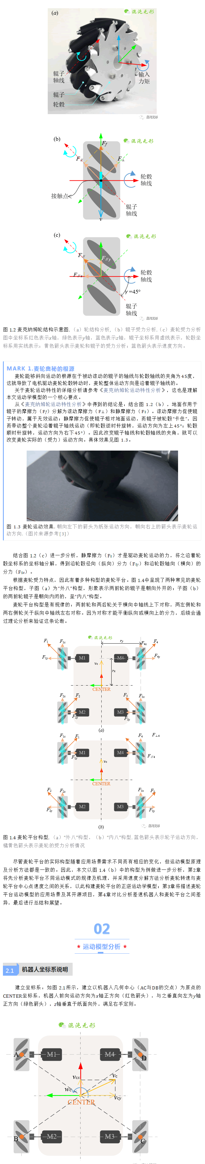 從運動空間分類,輪式移動機器人可分為非全向移動類型和全向移動類型。在之前的系列文章中已經(jīng)介紹了兩輪差速機器人、car-like robot、四輪驅(qū)動(SSMR)機器人及履帶式機器人,這都屬于非全向(差速驅(qū)動)移動機器人的范疇,而本文將介紹全向移動機器人中的一款——基于麥克納姆輪的全向移動機器人(下文簡稱為麥輪平臺)。