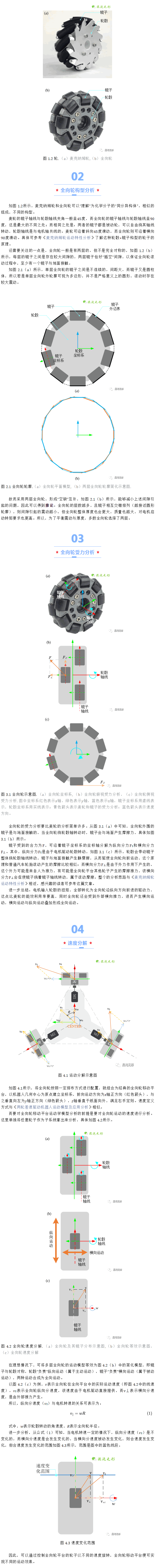 本文先描述了全向輪的構(gòu)型及基本特點(diǎn),接著對(duì)單個(gè)全向輪進(jìn)行了受力分析,指出了電機(jī)轉(zhuǎn)矩與全向輪所受分力的關(guān)系,并在此基礎(chǔ)上分析了全向輪縱向分速度與電機(jī)輸出轉(zhuǎn)速之間的關(guān)系,給出速度分解方程;后,總結(jié)分析了全向輪的在實(shí)際使用過(guò)程中的特點(diǎn)及問(wèn)題。