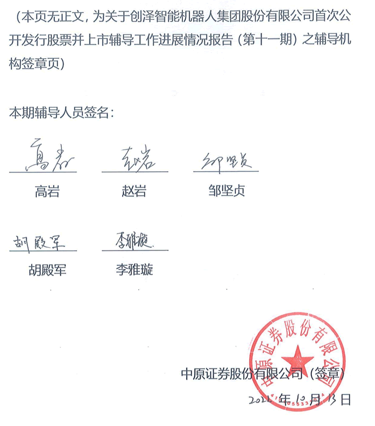 創(chuàng)澤智能機(jī)器人集團(tuán)股份有限公司首次公開(kāi)發(fā)行股票并上市輔導(dǎo)工作進(jìn)展報(bào)告(第十一期)